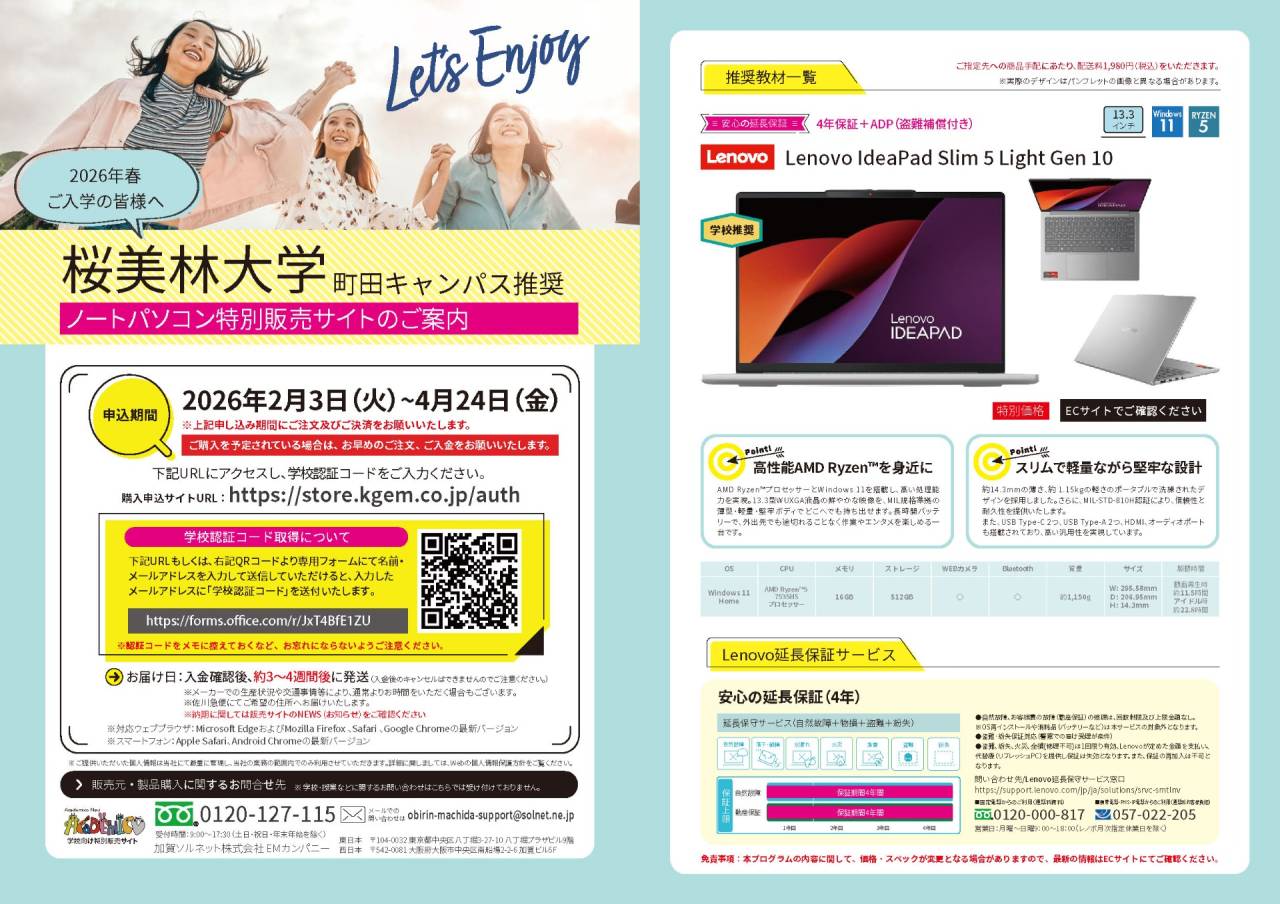 2026年度春ご入学・在校生の皆様向けにPC販売を開始いたしました。